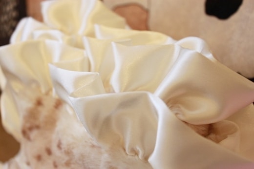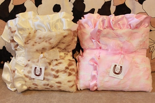 毯子邊緣用緞面布料收成荷葉邊,柔軟滑順又帶點涼涼的觸感,對寶寶來說具有安撫巾的功效。