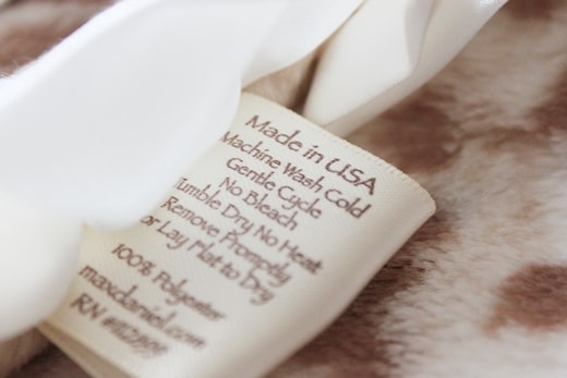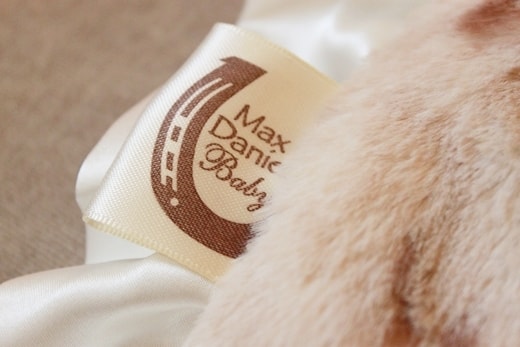Max Daniel驗明正身的標籤就車縫在毯子邊緣,俏妞大約5、6個月大的時候,超愛咬這個標籤。