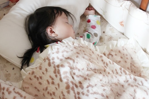 從5個月大蓋到現在,俏妞睡前喝牛奶或是睡午覺,還是會吵著要蓋這條毯子。