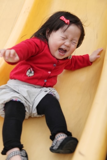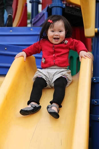 有媽咪問這款髮夾會不會容易滑落?那麼看看俏妞這張溜滑梯的照片就知道囉!