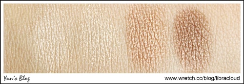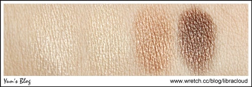 這一格眼影偏粉膚色,珠光感比打底色稍微明顯一點點。