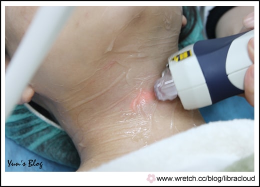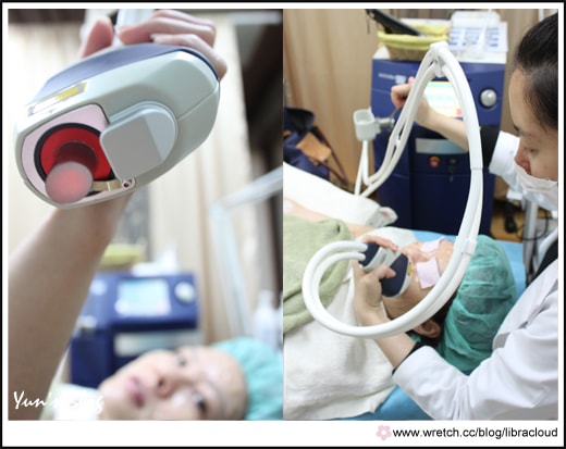 左邊這張照片是德國光纖柔膚雷射的儀器頭,滑過臉上是冰冰的感覺。