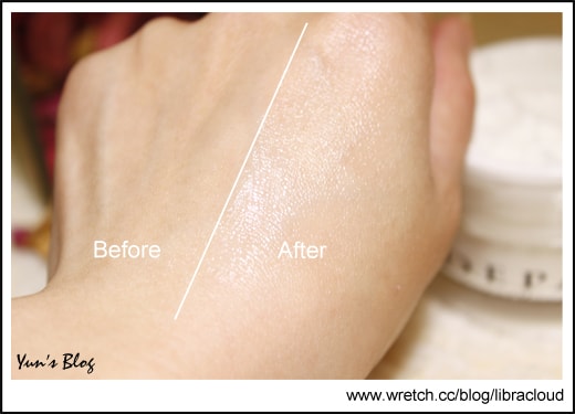 保濕霜完全被吸收之後,手背皮膚明顯亮了起來,