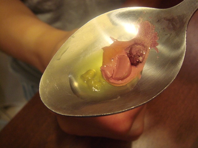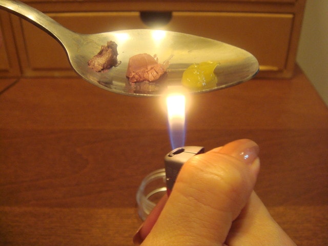 。◕‿◕。使用打火機在湯匙底部加熱。