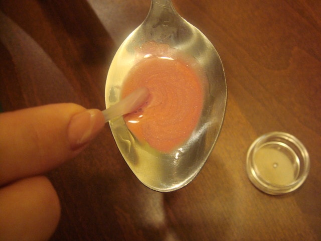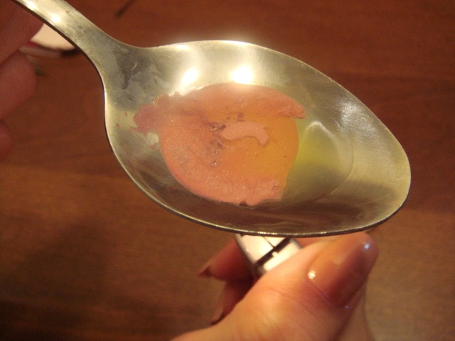 注意!一定要把口紅和護唇膏加熱至完全融化為止,再用小挖棒攪勻。