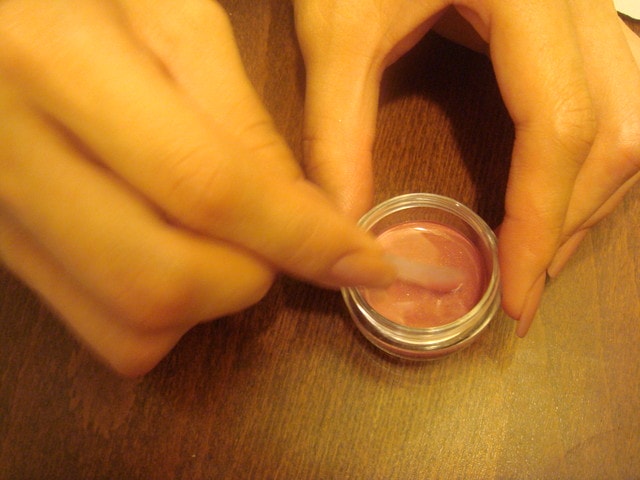 用小挖棒把口紅上的小氣泡輕輕弄破。