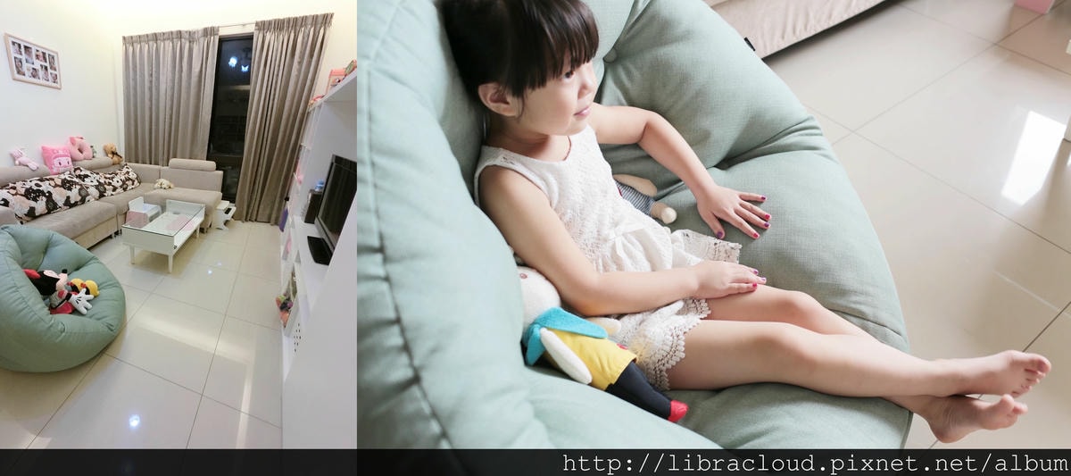 因為AJ2星球泡芙懶骨頭的進駐,我們家的長條型沙發完全被冷落了, 俏妞看卡通要坐這、我看雜誌追韓劇要坐這、俏妞爸看球賽也要坐這, 認真想想好像真的很久沒坐長型沙發椅了。 我一直都在找坐下去之後人可以完全陷在其中、像嬰兒被媽媽環抱在懷中的舒適懶骨頭, 但是不要太軟,太軟的起身會很困難,我要找的是軟硬…